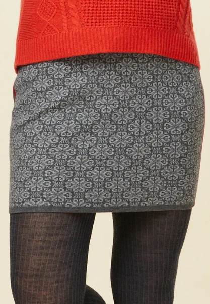 Wear the Elaine Skirt with our Marisol Cowlneck for an all-over Nordic jacquard look. Or wear it on its own and reap all the benefits of this warm and comfortable, stretchy skirt.