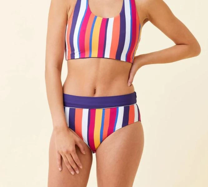 The Nokoni Reversible Bikini Bottoms let us have it our way whether that’s a high-rise or fold-over fit. It works well for mixing and matching with a variety of tops and comes in a few bold prints that help us stand out at the beach.