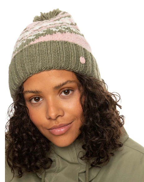 Stand out on the slopes with the Hateya Beanie featuring a colorful jacquard knit pattern with hairy yarn. The fleece-lined band and folded design provide warmth and comfort during your winter adventures.