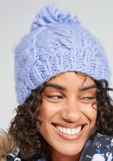 Stay cozy with the Winter Beanie. The classic design is crafted from chunky cable knit fabric with a thick rib-knit bottom hem. Complete with a matching pompom detail at the top.