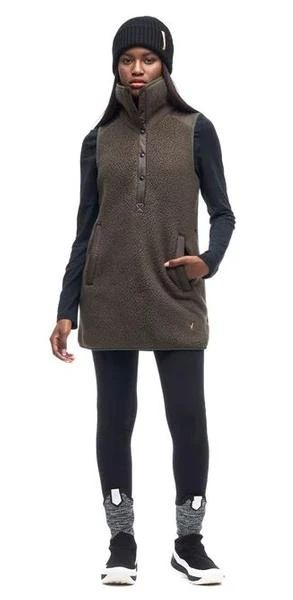 Sherpa sleeveless tunic maintaining warmth effectively while wicking away moisture, for outdoor activities in cool weather. Its casual design makes it the perfect blend of a technical second layer and active everyday clothing. Made from Bluesignยฎ-certified Polartecยฎ Thermal Pro Shearling fabric.
