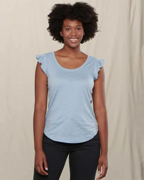 Flirty ruffle cap sleeves make this tee anything but basic. Made from our favorite Samba Dia fabric, this feminine t-shirt is a fresh twist on a classic scoop neck t-shirt.