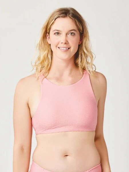A sporty, high-neck silhouette with a playful strappy back, the Zuri provides moderate support with molded cups and adjustable straps.